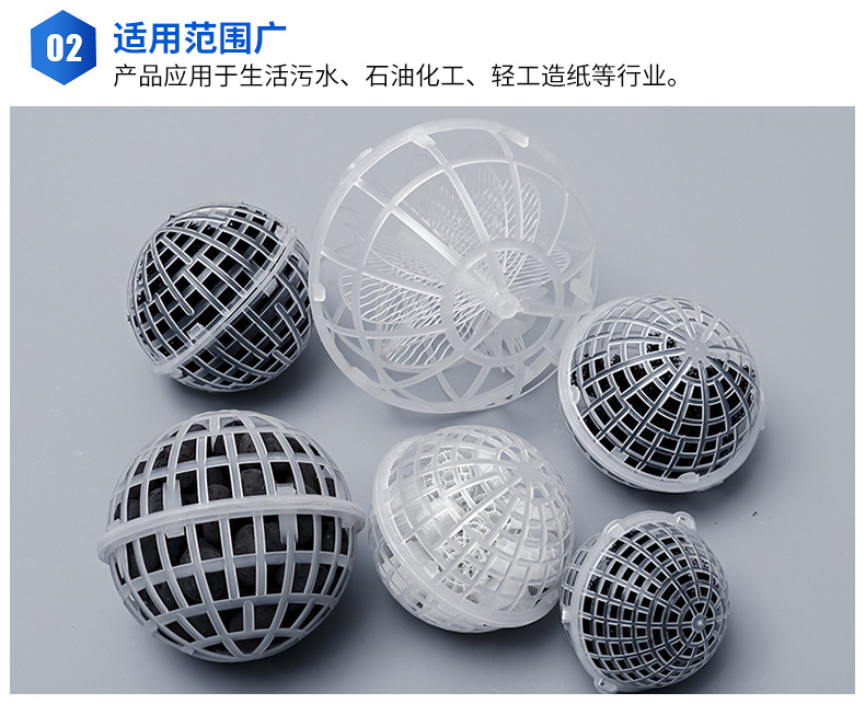 多孔球形生物懸浮球填料為什么也屬于一種組合填料,因為懸浮球填料具有全立體結(jié)構(gòu),里面可以填充聚氨酯海綿 火山巖  陶粒 沸石 脫氮填料 纖維濾料等生物水處理濾料【填料】。